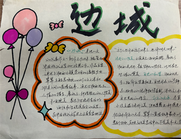 “天时人事日相催,冬至阳生春又来。”同学们阅读《边城》《巴黎圣母院》等名著,手绘手抄报,提升自己的语文综合素养。