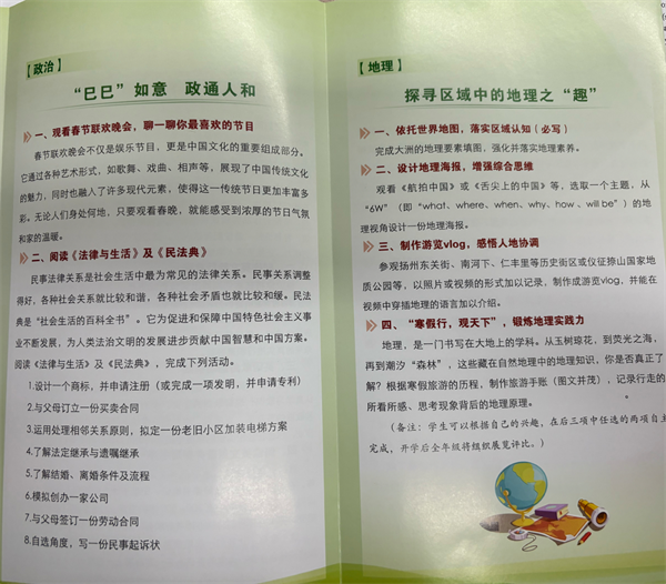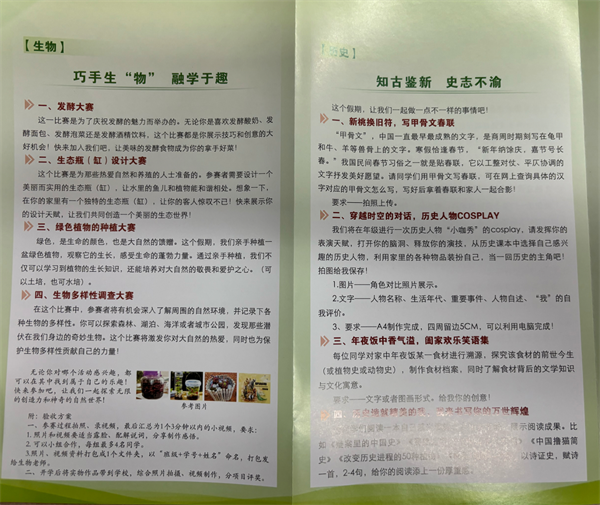 祥蛇舞新春,寒假踏歌来。在这辞旧迎新之际,为丰富同学们的精神文化生活,营造浓厚的节日氛围,寒假之前,根据学校工作部署,高二年级各学科老师们结合校情和学情,精心设计了富有创新性、实践性和趣味性的寒假特色作业,让我们一起欣赏高二孩子们在假期里的精彩表现吧!