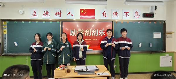 首先在班委的组织下,班级开展了“励学刮刮乐”活动,课上对通过主动找老师答疑解惑的同学、月考成绩优异和进步显著的同学进行班级积分奖励,同学们用积分向学习委员兑换刮刮乐并领取心仪奖品。此次活动不仅对开学第一阶段态度认真、学习进步的同学给予了肯定,还激发了同学们学习的热情。