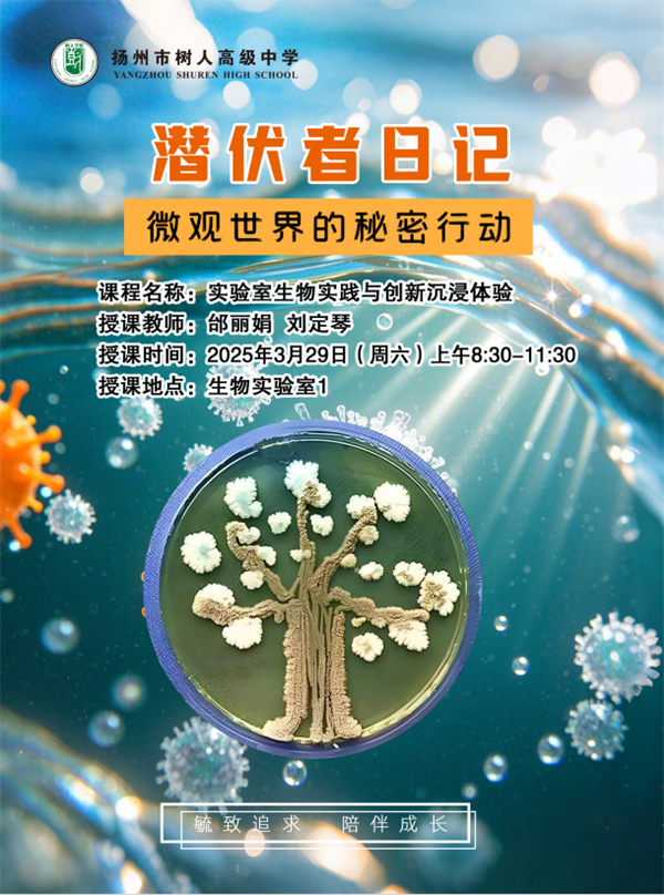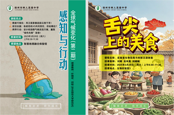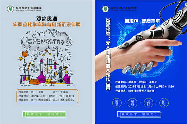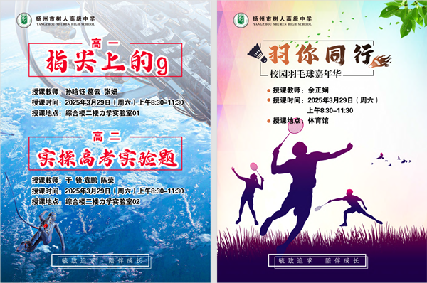 本周六3月29日上午8:30-11:30,扬州市树人高级中学将开设第四期“知行拓展”综合实践活动。