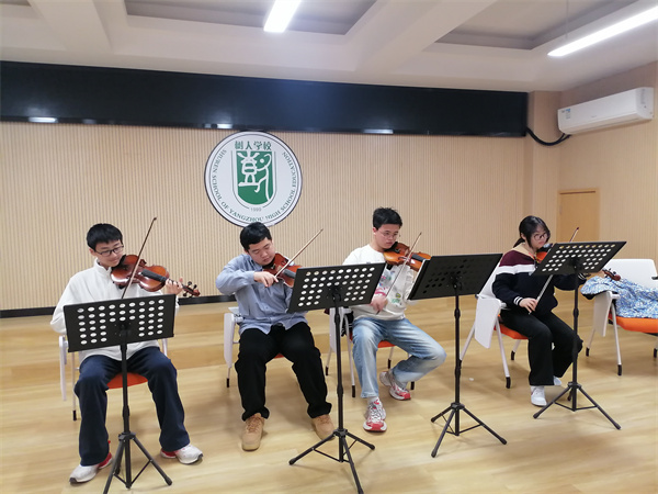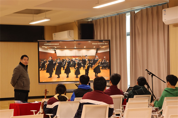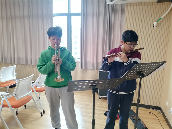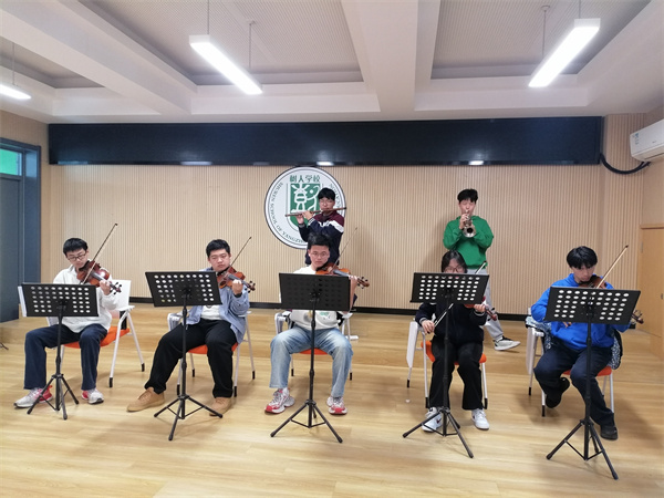 树人管弦乐团知行拓展集中训练在校园合唱教室顺利开展,乐团成员在王勇老师指导下,进行了“分声部专项+合奏协作”模式,弦乐组、木管组、铜管组等声部分别进行针对性练习。在小提琴、长笛、小号等乐器的音阶与练习曲训练中,教师从演奏姿势、气息控制到乐句处理逐一指导,帮助零基础学生突破技术难点。训练合奏环节,乐团首次尝试《石头古城》曲目,通过反复磨合,声部间的层次感与整体和谐度显著提升。在训练过程中,熟练的同学主动承担“小导师”角色,进行耐心指导,协助新加入同学熟悉乐谱与演奏技巧,同学们互帮互助,活力满满,以饱满的热情投入训练,进一步提升了团队协作能力与演奏水平,为后续演出打下坚实基础。演奏不仅是技巧的锤炼,更是意志力与团队精神的培养。