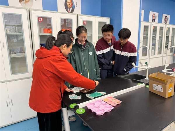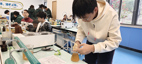 高一化学组郭巧妮、徐洋、夏菁三位老师共同组织了本次“双高贯通:实验室化学实践与创新沉浸体验”活动,活动中学生们在实验室参与了肥皂的制作实验。老师们先详细讲解了皂化的原理,让学生们对化学反应有了更深入的理解。随后,学生们在老师的指导下亲自动手,将油脂与碱液混合、搅拌、加热,再根据自身喜好加入色素、精油,最后装入模具,在实验中仔细观察每一个步骤的变化。在实践过程中,大家遇到问题积极讨论,相互协作解决。此次活动不仅让学生们把理论知识运用到了实际操作中,还激发了他们对化学学科的兴趣和探索欲。通过小组合作锻炼了学生的团队协作能力和问题解决能力,助力学生全面发展。