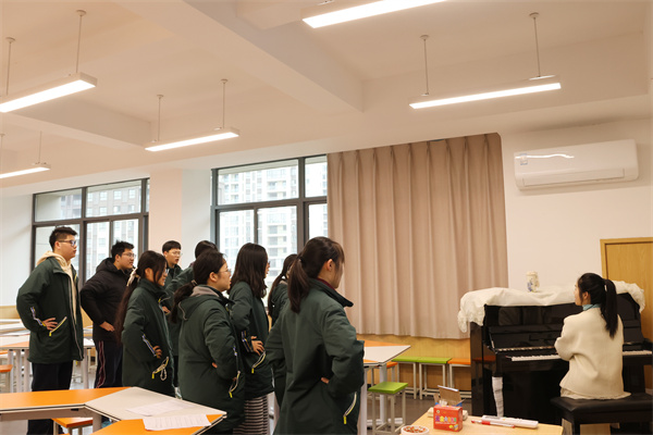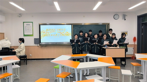 合唱精进之旅第四期如期开展,吸引了众多热爱声乐的同学积极参与。课程由贺潇未老师组织教学。贺老师先带同学们进行了基础的发声练习,从声乐的正确呼吸、表情状态到音准节奏,逐一进行细致的讲解与示范。随后,分声部逐句教唱,练习了歌曲《启程》。同学们都积极配合、认真学习,准确把握节奏、揣摩歌曲的情感,不断磨合声部间的配合,力求达到和谐、统一的效果,高声部的同学声音清亮情绪饱满,低声部的同学声音浑厚节奏准确,两个声部相互交织、配合默契,悠扬的歌声弥漫了整个艺术基地。音符跳跃间,梦想悄然启航,每个声音都承载着对艺术的热爱与追求。期待同学们继续用歌声传递温暖力量,在音乐世界绽放独特光芒。