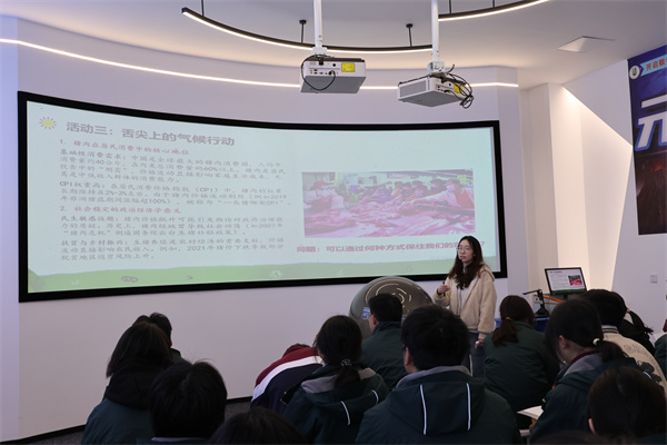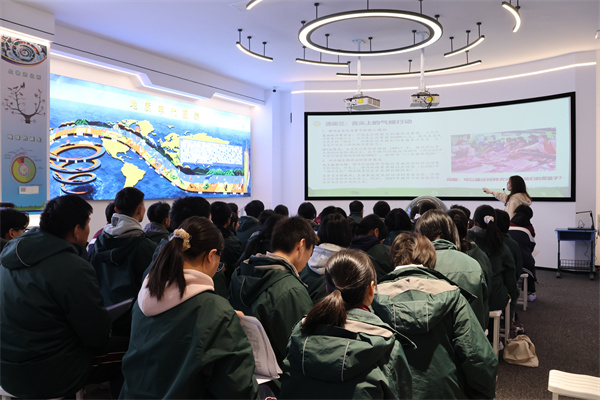 地理学科在智慧地理融合体验馆成功开展第三期“双高贯通:地理思维培养与应用视野”综合实践活动,高一、高二学生通过专题讲座、实践探究与互动体验,深入感知地理学科的现实价值与多元应用。活动特邀华东师范大学的叶晓珍、何恬两位研究生开设讲座。何恬以《亚马孙雨林与我的红烧肉:全球生态链中的中国餐桌》为题,通过剖析森林砍伐、气候变化与经济活动的关联,引导学生以小组合作形式探究“远方与生活”的内在逻辑,激发学生用地理思维理解全球生态链的复杂性。叶晓珍则带领学生走进校园气象站与实时气象数据中心,结合气象水质传感器开展探究实验设计,引导学生从生活中的地理现象切入,探讨气象与环境问题的解决方案。本次活动以“知识+实践”双线贯通为核心,依托地理馆资源,助力学生的地理思维与科学探究精神的培养。