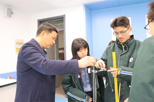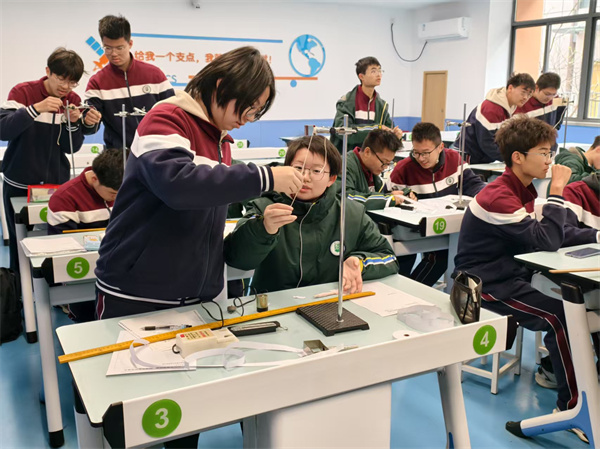 随后,孙晗钰、葛云老师在力学实验室精心准备物理实验器材,组织高一学生测量重力加速度g。两位老师鼓励学生跳出固有框架,大胆创新实验设计。学生们的创新思维被充分点燃,也感受到了合作探究的魅力。同时,高二参加活动的学生来到电学实验室,针对历年来的高考电学实验题进行实际操作,以高考真题为模型开展实验室操作,增强学生实验实操能力的同时,也开阔了学生的眼界,切身感受实验考题的设计与考点,可谓一举两得。