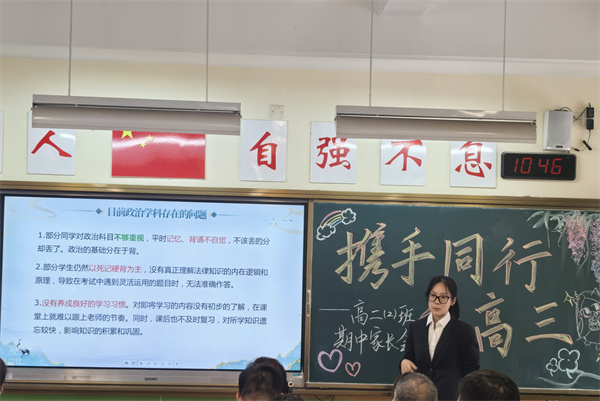 高二各班还邀请了家长代表开展家庭教育心得分享。家长们从自身家庭教育经验出发,分享了如何培养孩子的学习习惯、如何与孩子有效沟通等方面的心得,引发了在场家长的强烈共鸣。
