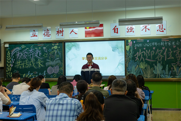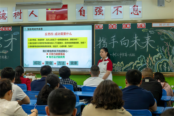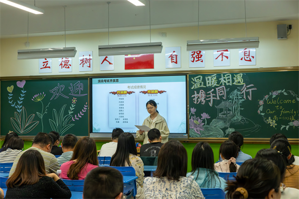 随后请家长代表和学生代表发言,家长代表和学生代表真挚诚恳的发言赢得了在场所有人的热烈掌声。随后请家长代表和学生代表发言,家长代表和学生代表真挚诚恳的发言赢得了在场所有人的热烈掌声。随后,班主任播放了各个学科老师用心制作的学法指导视频,让家长深入全面了解各学科的学习特点和学习方法,为家长与孩子的沟通提供了良好基础。最后,班主任进行总结,列举了本次考试中暴露的问题,并提出了解决方法,为家长提供了孩子未来改进的目标和方向。
