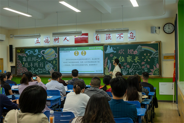 四点钟,家长们进入孩子的班级,参加由班主任组织的班级家长会。首先,班主任介绍了本次期中考试的整体情况,分别介绍了九门科目的总分和单科成绩,并告诉家长要正确、理性地面对学生的成绩,将对成绩的过度关注转移到学生的生活态度、生活习惯、责任意识、品德教育等方面。