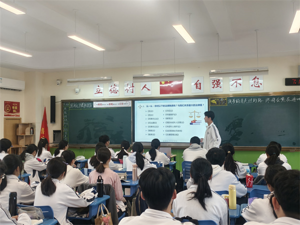 4月21日,高三(1)班教室内气氛热烈,一场以“用法治点亮未来”为主题的班会在此开展。本次班会旨在引导高三学生树立法治观念,提升法律素养,让法治精神融入日常生活,为即将成年、将要步入社会的学生们筑牢法治根基。