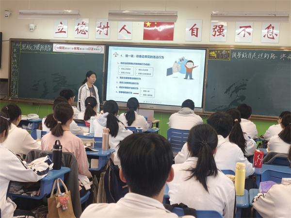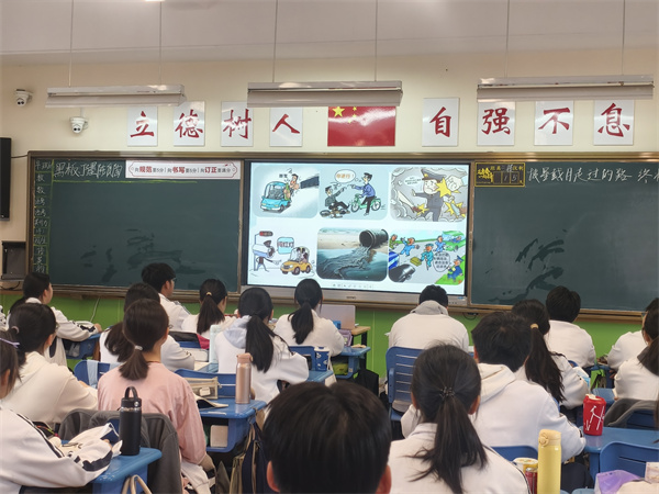 班会伊始,班主任杨老师以一段生动的普法视频引入主题,视频通过几个案件,展现了法律在解决矛盾纠纷、维护公平正义中的重要作用,迅速吸引了同学们的注意力。随后,杨老师结合高三学生实际,从校园欺凌、网络诈骗、消费维权等与学生息息相关的法律问题入手,用通俗易懂的语言讲解相关法律知识,并列举了多个真实案例,深入浅出地分析案例中涉及的法律条款和法律责任,让同学们深刻认识到法律并非遥不可及,而是与生活紧密相连。
