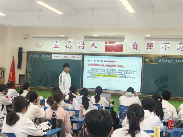 为了让同学们更深入地理解法律知识,班会设置了互动问答和情景模拟环节。在互动问答中,同学们积极踊跃举手,就自己感兴趣的法律问题向老师提问,杨老师耐心细致地一一解答。在情景模拟环节,同学们分组演绎了诸如 “遭遇校园欺凌如何应对”“网络购物权益受损怎样维权” 等场景,通过亲身体验,将所学法律知识运用到实际情景中,不仅加深了对法律知识的理解,还提高了运用法律武器维护自身合法权益的能力。