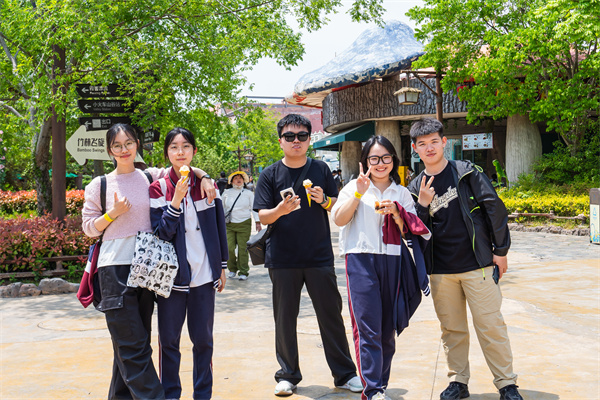经过第一天的充实体验,第二天的实践活动于4月23日上午十点拉开帷幕。学生们在老师们的带领下,兴致勃勃地前往无锡融创乐园。一路上,同学们欢声笑语,交流着对融创乐园的期待和好奇。无锡融创乐园由世界知名主题乐园设计公司美国RVJMA公司设计,以传统江南文化为主题,设计了运河人家、泡泡泉小镇、霞客神旅、蒸汽时代、田园欢歌、冒险港湾六大主题园区。到达融创乐园后,同学们迅速被眼前的景象所吸引,迫不及待地开启了游玩之旅。