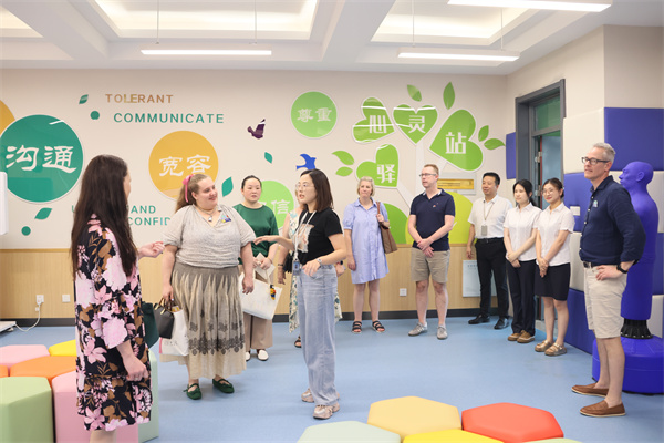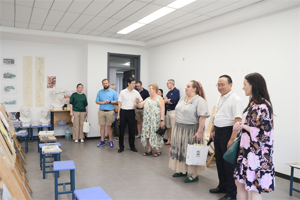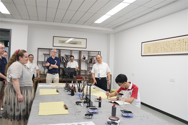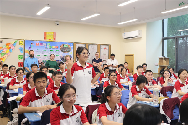 来宾们先后参观了学生食堂、智慧地理融合体验馆、润心广场,心理咨询室、尚美艺术课程基地、化学和生物实验室等场馆。来宾们在操场观看了学生大课间活动,在艺术基地体验古筝、书法,在梦想剧场欣赏学生演出,在高一(12)班教室与同学们热情互动,深入了解我校学生真实的课内课外学习和活动。我校美丽的校园景色、先进齐全的教育教学设施,活泼的校园文化给来宾们留下了深刻印象。