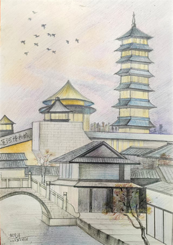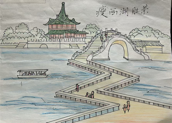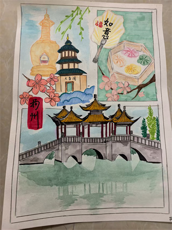暑假期间,我校向有绘画特长孩子征集作品,进行以扬州城风貌为主题的绘画创作,经评审有12幅作品入展。9月2日上午12位同学们的作品在珍宝馆作为特展进行展示。