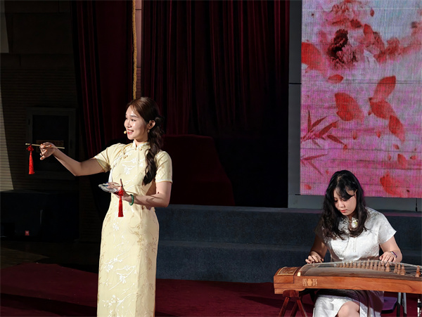 在音乐会交流环节中,我校艺术组四位音乐教师代表江苏省展示了扬州非遗音乐,她们将古筝的婉转清丽与扬州清曲的细腻唱腔相结合,演绎了经典曲目《烟雨扬州》,生动展现了江南水乡的柔美与扬州传统文化的独特韵味,赢得了现场专家与同仁的一致好评。