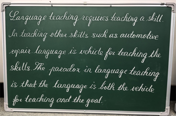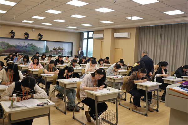 安静的考场,是思维高速运转的战场。专业技能笔试环节,深度考察了教师们的语言素养、语言学理论、教学法知识及人文底蕴。笔尖流淌的,不仅是答案,更是他们平日深耕不辍的积淀。