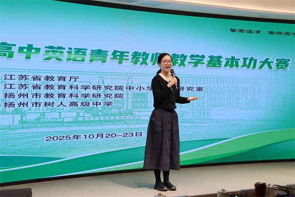 接着,扬州市教育科学研究院吴梦雷院长在讲话中高度赞扬了参赛教师展现出的精湛教学技艺。他强调,当前高中英语课程改革正朝着培养学生核心素养的方向逐步推进,课堂应成为学生多方面能力发展的培育地。他期望教师们保持对教育的热爱,“用英语点燃学生的求知火焰”。