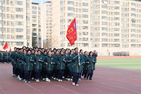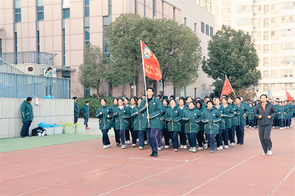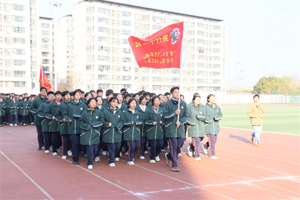 紧接着是12分钟慢跑,冬日寒风挡不住前行脚步。起跑后,整齐划一的口号响彻操场,回荡在跑道上空。大家跟着口号调整节奏,前半程匀速蓄力,后半程咬牙坚持,体力稍弱的同学也在集体氛围中跟上队伍,汗水浸湿衣领,却没人停下脚步,这份执着恰似攻克难题时的笃定。