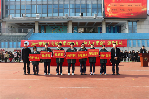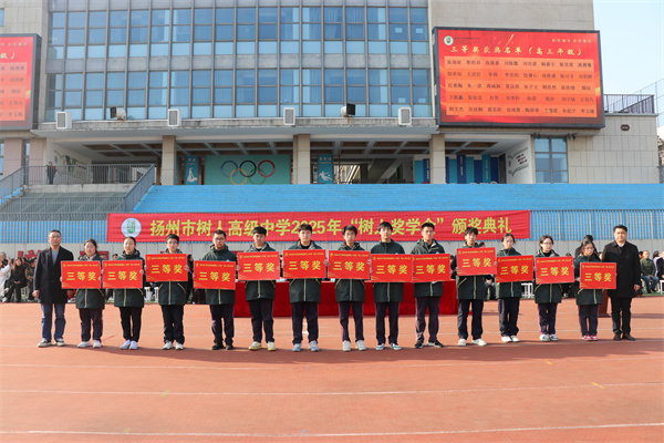 冬日暖阳,万物蕴藏。在这孕育希望的美好时节,12月18日下午,扬州市树人高级中学隆重举行了2025年“树人奖学金”颁奖典礼。树人学校党委书记唐炜,副校长张鹏、徐建、童敏娟、程志华及家长代表出席了本次典礼,凤栖湖校区全体师生参加活动。本次颁奖典礼由程志华副校长主持。