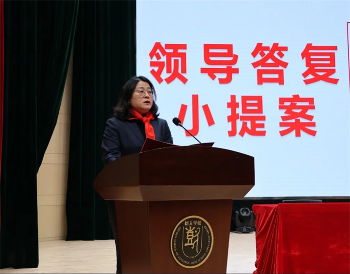 本次少代会筹备期间,少先队员代表们充分行使民主权利,深入走访调研,倾听伙伴心声,围绕校园建设管理、队员身心健康成长、综合素质发展等事关师生切身利益的问题积极建言献策,共提交有效提案109份。针对提案中反映的共性问题和合理建议,九龙湖校区校长赵平、南门街校区校长姜亚芹逐一进行现场答复。他们表示,学校将高度重视少先队员的合理诉求,把提案办理作为改进工作、提升办学质量的重要抓手,逐项梳理、细化措施、限期落实,同时号召全体少先队员继续发挥主人翁精神,主动参与校园治理,共同建设和谐美好的校园环境。