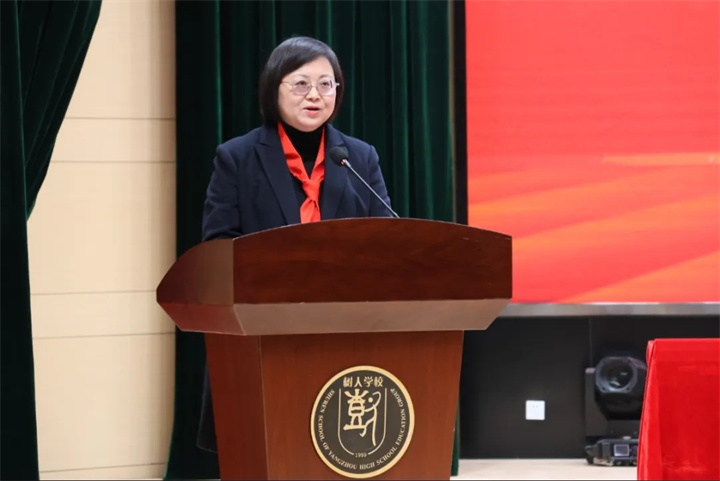 树人学校副校长童敏娟为大会致辞。她首先向全体少先队员致以亲切问候,对队员们在筹备过程中充分发扬民主精神、积极建言献策的行为给予高度肯定。童校长结合第九次全国少代会部署的"播种"" 壮苗""护航"等六大工程,对全体少先队员提四点希望:一是铸牢信仰之基,做听党跟党的 "红孩子"。二是锤炼过硬本领,做全面发展的"小标兵"。三是培育优良品德,做崇德向善的"好少年"。四是勇于创新创造,做开拓进取的"小先锋"。她勉励全体少先队员要牢记习近平总书记的谆谆教诲,坚定不移听党话、跟党走,主动为学校发展建言献策,以实际行动践行“请党放心,强国有我”的铮铮誓言,努力成长为具有“世界眼光、中国灵魂、扬州情怀、树人特质”的大国公民,在实现中华民族伟大复兴中国梦的生动实践中放飞青春梦想、书写人生华章。