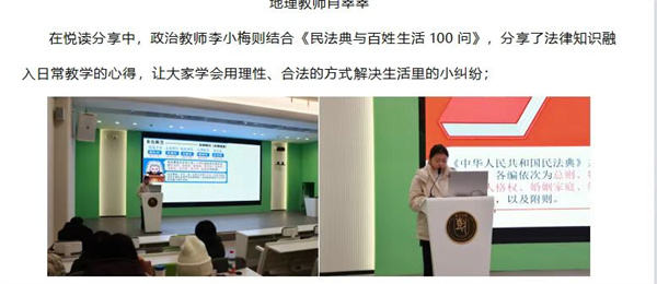 活动期间,工会组织了多场读书分享会。在分享会上,教职工们畅所欲言,分享自己阅读的书籍和感悟。有的教职工从教育类书籍中汲取先进的教育理念,结合自己的教学实践,探讨如何更好地培养学生的核心素养;有的教职工沉浸在文学经典的世界里,分享书中动人的故事和深刻的人生哲理,引发大家对生活、对教育的思考;还有的教职工从历史文化书籍中了解中华优秀传统文化,增强文化自信,并将这些文化元素融入课堂教学。