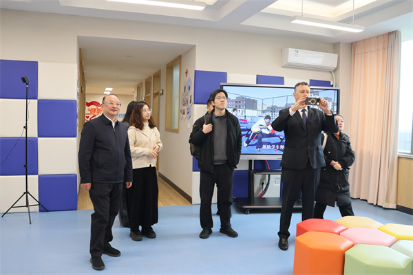 随后,在学校老师的引导下,亚当姆・汉斯校长一行沿着心理咨询室—润心广场—尚美艺术基地—实验室—梦想剧场—图书馆—地理课程基地的路线参观校园,实地感受树人学校的校园文化与办学特色。从彰显人文关怀的心理教育空间,到融合艺术与传统文化的尚美艺术基地,再到设施先进的课程基地与实验室,树人学校“人文与科学相融,全面与特色并重”的育人理念体现在校园的每一处细节,来访嘉宾对学校的校园建设与特色发展给予了充分肯定。