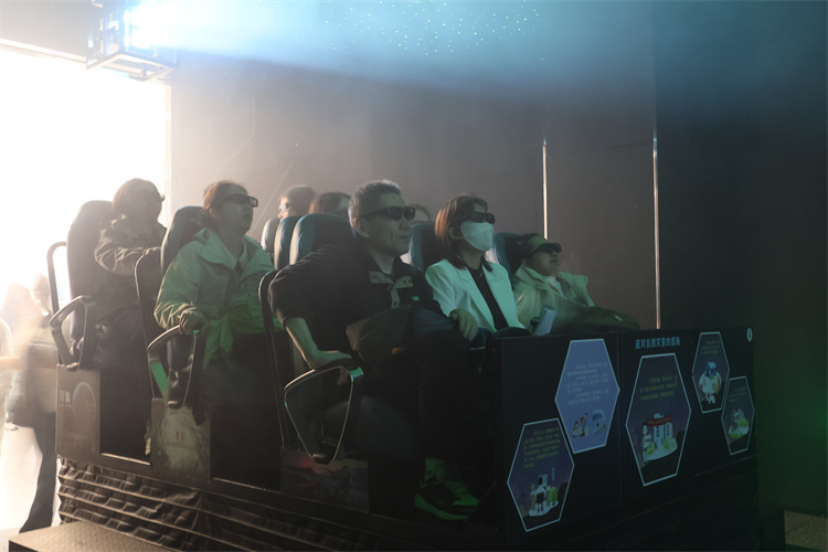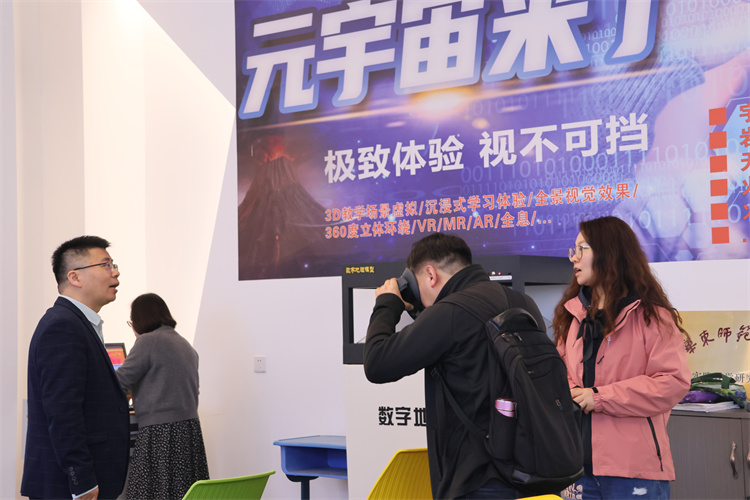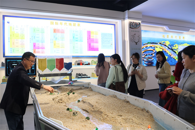 课后,来访教师参观了我校智慧地理融合体验馆。在课程基地工作人员的引导下,来宾们依次体验了5D自然灾害模拟设备、岩矿多媒体交互展示系统、扬州乡土地理交互演示系统等沉浸式教学设施。从浩瀚星空到家乡水土,从灾害模拟到岩石识别,科技赋能下的地理课堂让抽象概念变得可感可触,令来访教师频频驻足、交口称赞。