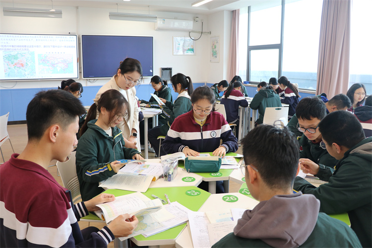 活动伊始,我校马珊老师执教公开课《国家之间的合作发展——以“一带一路”为例》。课堂以中卡合作为真实情境,以“区域差异—区域联系—区域协调”为逻辑主线,引导学生从能源、产业、基础设施、文化交流等多维度剖析国家间合作的动因与意义。学生在一系列层层递进的探究任务中,逐步建构起对“政策沟通、设施联通、贸易畅通、资金融通、民心相通”的深度理解。整堂课既有宏阔的国际视野,又有扎实的地理思维训练,展现了真实情境驱动下课堂的蓬勃生长力。