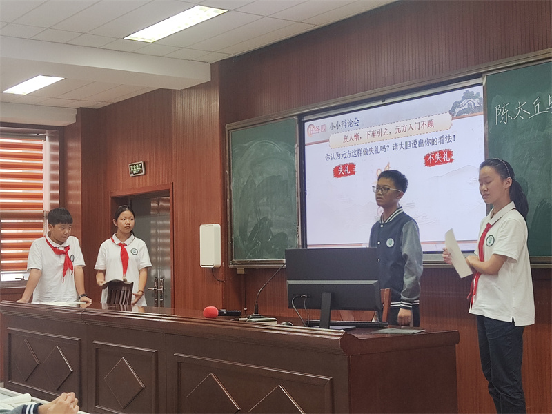 9月24日第六节课,周敏老师在初一(16)班开设了《陈太丘与友期行》校内公开课。本节课主要以回顾旧知为导入,让同学们回忆神童小故事来激发学生学习兴趣。由整体感知,疏通文意,再到走进人物,体会情感。通过分角色朗读文中的语句,体会人物形象和故事味。循循善诱,引导学生思考和发言,注重与学生们的互动,鼓励学生们积极发言。设计小小辩论会,让学生各抒己见,授课过程中真正做到课堂交给学生,尊重学生的主体性。周老师能够按照课程标准和教学内容的体系进行有效教学,步步有引导,句句是鼓励。