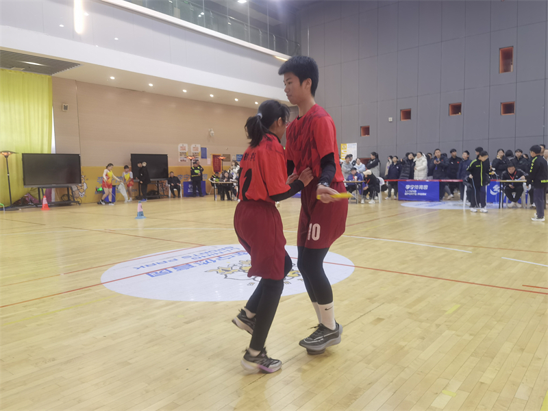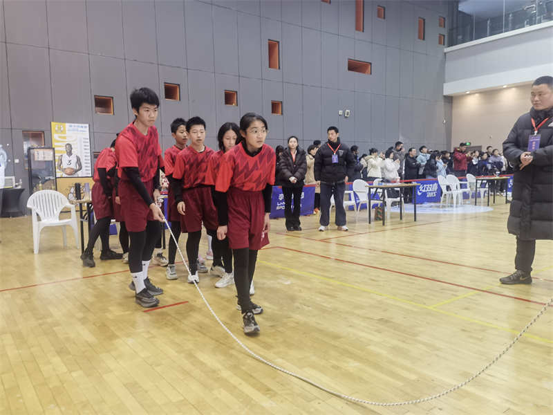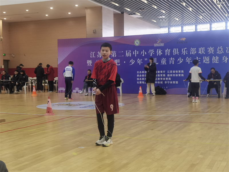 12月21日,由江苏省教育厅、江苏省体育局主办,扬州市教育局、扬州市体育局承办的江苏省第二届中小学体育俱乐部联赛总决赛暨“奔跑吧.少年”儿童青少年主题健身活动在扬州隆重开幕。我校“久跃”体育俱乐部跳绳队员经过顽强拼搏,团结协作,最终取得团体三等奖的成绩。周雅茹同学取得女子1分钟双摇第一名,继11月份跳绳锦标赛之后再次夺冠,另外还取得女子30秒单摇第四名。黄奕垚同学取得男子30秒单摇第二名。张雨桐和王琎怡取得女子一带一单摇轮换跳第四名,黄奕垚和周雅茹取得2×30秒双摇接力第六名,张晟睿,王琎怡,黄奕垚,周雅茹,取得4×30秒单摇第八名。蒋贝宁、刘俊熙、张易凯、蒋成浩、李芷琪、朱茗祺、辜荣轩、王琎怡、林梓馨、黄奕垚10名同学通力合作取得8字长绳第八名。