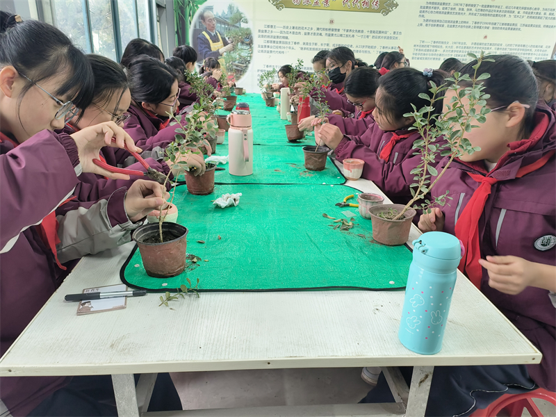 通过今天的活动,我们了解到“扬派盆景”就和扬州园林一样,既有北方雄建的特点,又有南方秀美之特征,感受到其自然、优美、含蓄的艺术魅力。同时盆景艺术在我们手上绽放出了新的光彩,更在我们心中种下了文化的种子。这次活动也让大家深刻认识到,文化的传承与发展需要每一个人的参与和努力。与时代共同携手共进,为弘扬中华优秀传统文化贡献自己的一份力量!