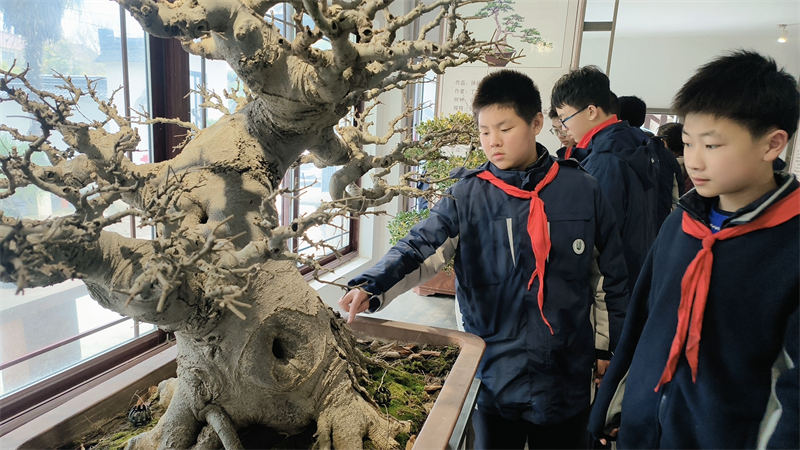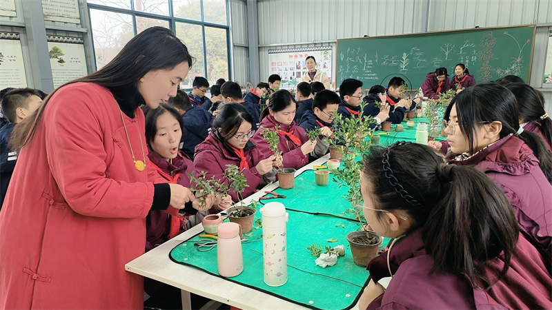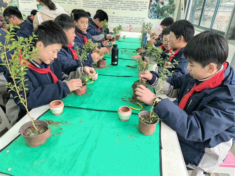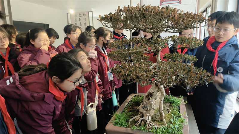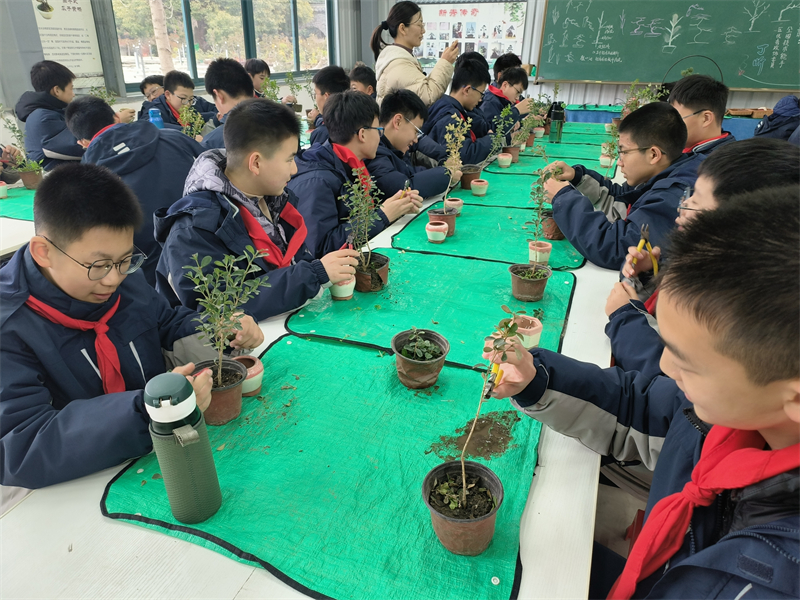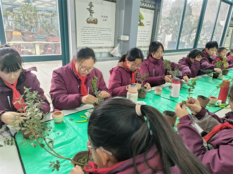 清坲绿野间,深耕意悠然,为拓展孩子们的学习领域,丰富学生的学习资源,12月23日下午树人九龙湖校区初一(11)班的同学们来到了江苏盆景实验园,开启了一场沉浸式的盆景艺术学习之旅。
