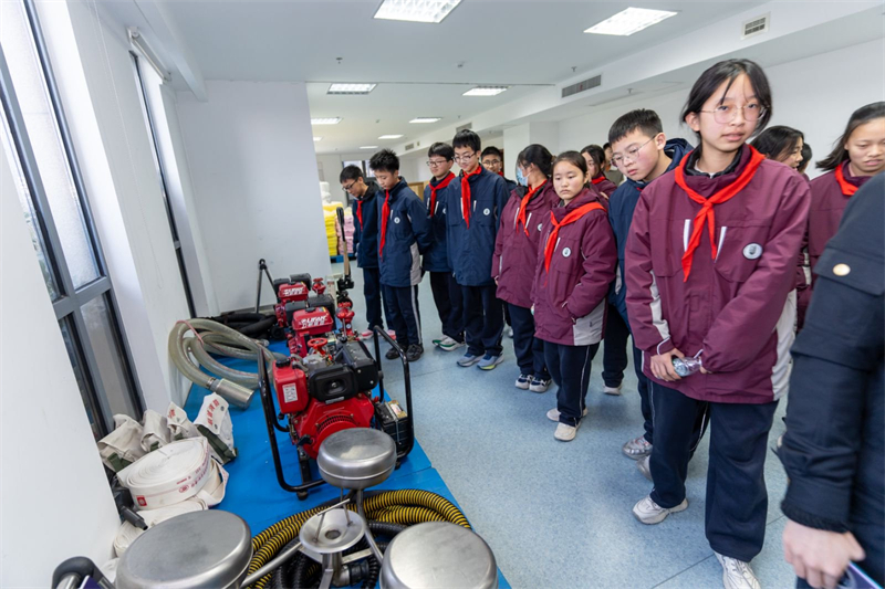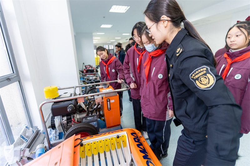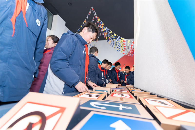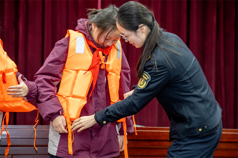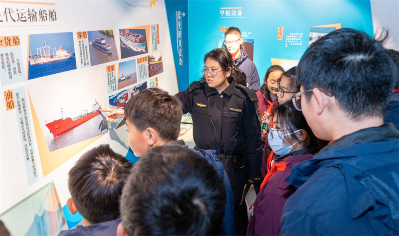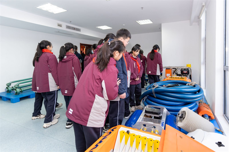 在交通执法指挥中心、应急设备库,通过讲解员细致的讲解,同学们近距离感受了水上交通执法、应急搜救和线上指挥工作,学习了各类水上搜救应急设备的名称、用途及工作原理。一问一答之间,同学们对水上安全工作有了更多立体的感知。