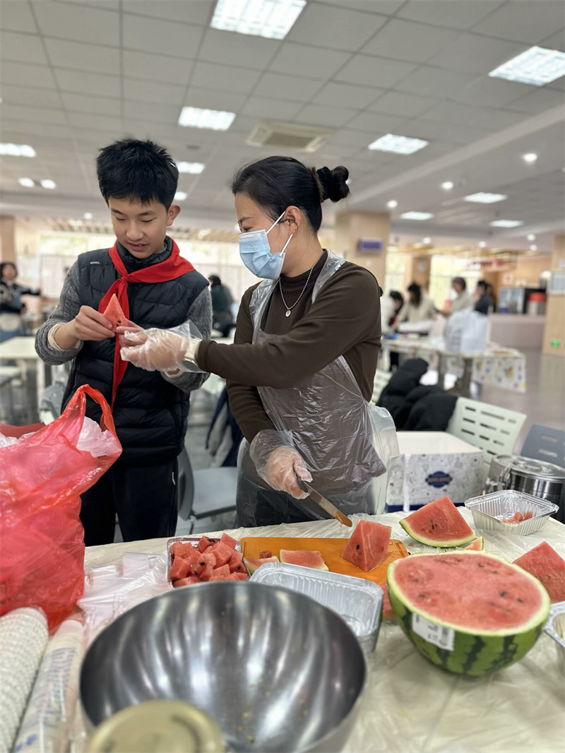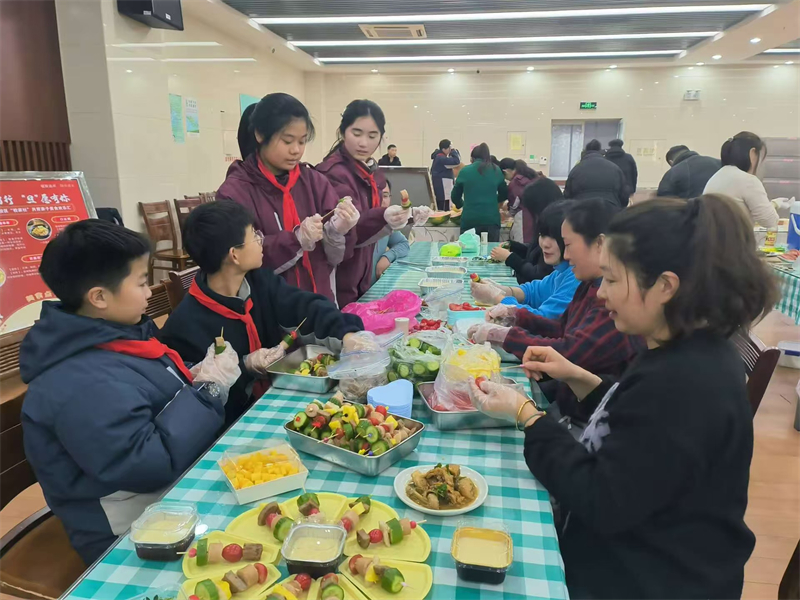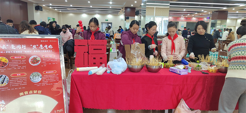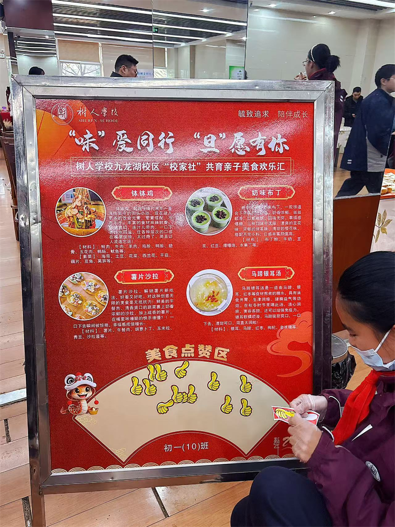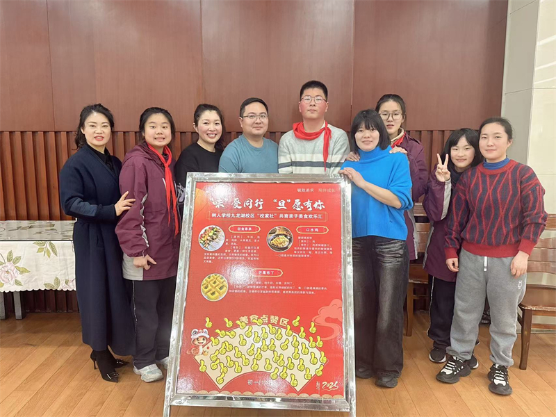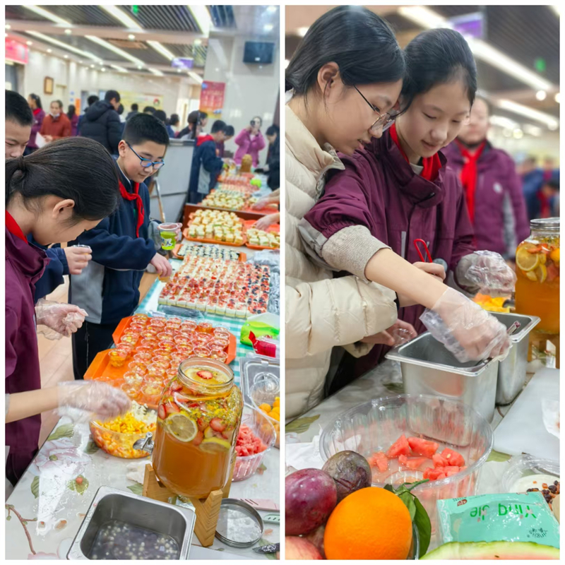 为了加强学校、家庭和社会之间的联系与合作,让孩子和家长共同参与美食制作和宣传,增进亲子关系,同时将劳动教育渗透在活动中,我校九龙湖校区初一年级于12月31日下午举行“校家社”共育亲子美食欢乐汇活动。