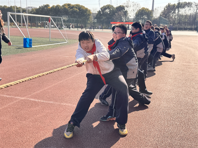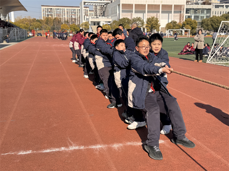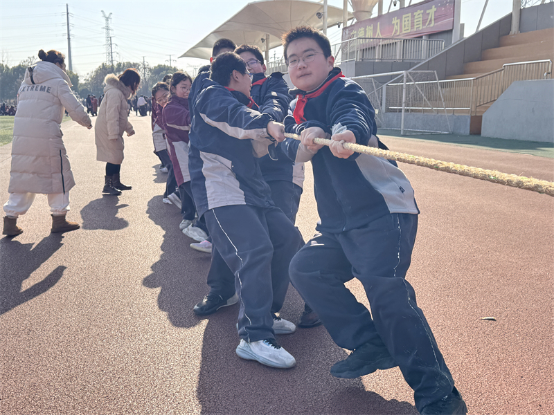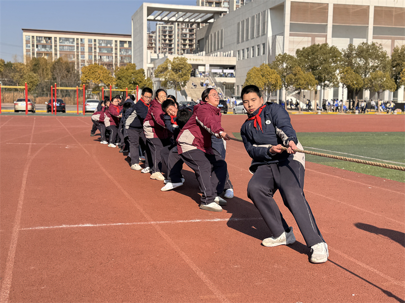 为了丰富学生课余文化生活,加强学生体育锻炼意识,培养学生积极进取、勇于拼搏的团队精神和集体荣誉感,增强班级凝聚力,真正落实阳光体育要求,12月31日我校九龙湖校区初一初二年级开展了“团结一心 力拔千钧”迎新拔河比赛。