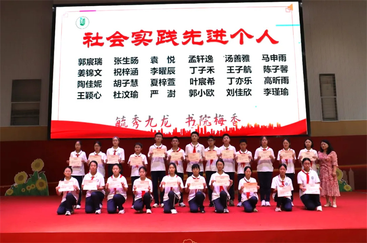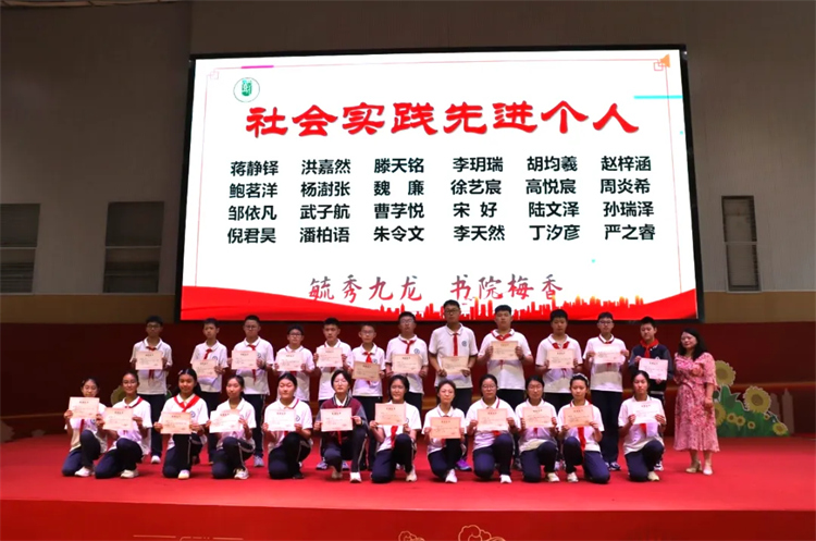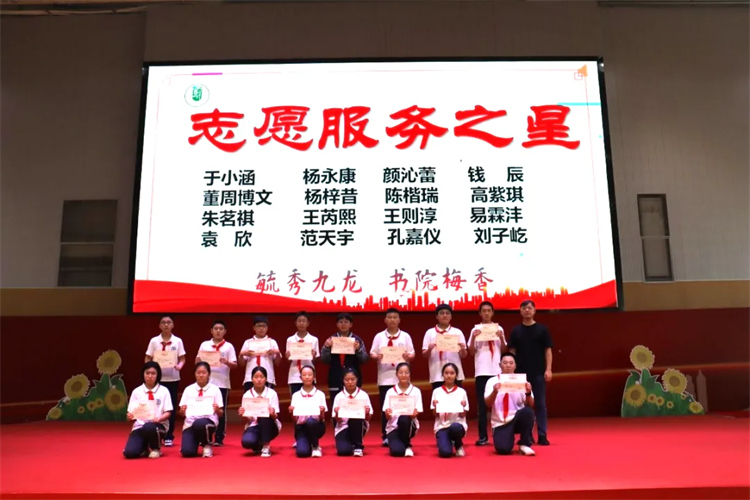 仪式开始,张静静老师回顾了师生们初一一学年的点点滴滴。在优秀学生表彰环节,年级组对三类表现突出的学生进行表彰。其中,“社会实践之星”走出课堂、触摸社会温度;“志愿服务之星”心怀热忱、点亮他人生活;“领航之星”以自律为帆,成为学业与品格的榜样。获奖同学依次上台领奖,现场掌声阵阵,为他们的优秀喝彩。