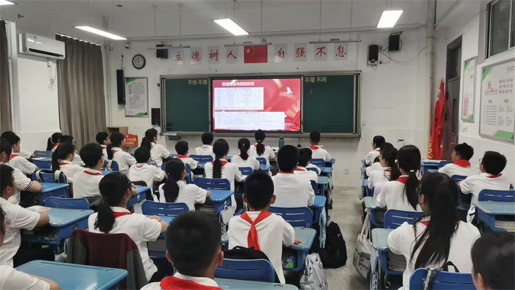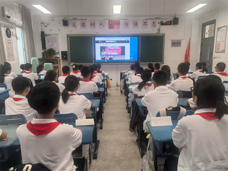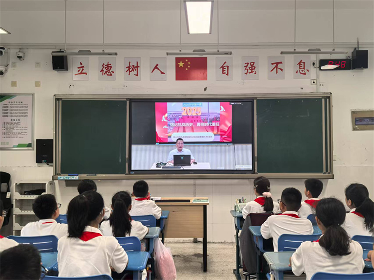 9月1日上午,树人学校九龙湖校区全体师生齐聚各班教室,同步收看由学校统一组织的《开学第一课》专题节目。本次活动以“赓续红色血脉,筑牢信仰之基”为主题,正值中国人民抗日战争暨世界反法西斯战争胜利80周年重要节点,由陈独祥老师主讲,为全校师生带来一场庄重而富有感染力的爱国主义教育讲座。