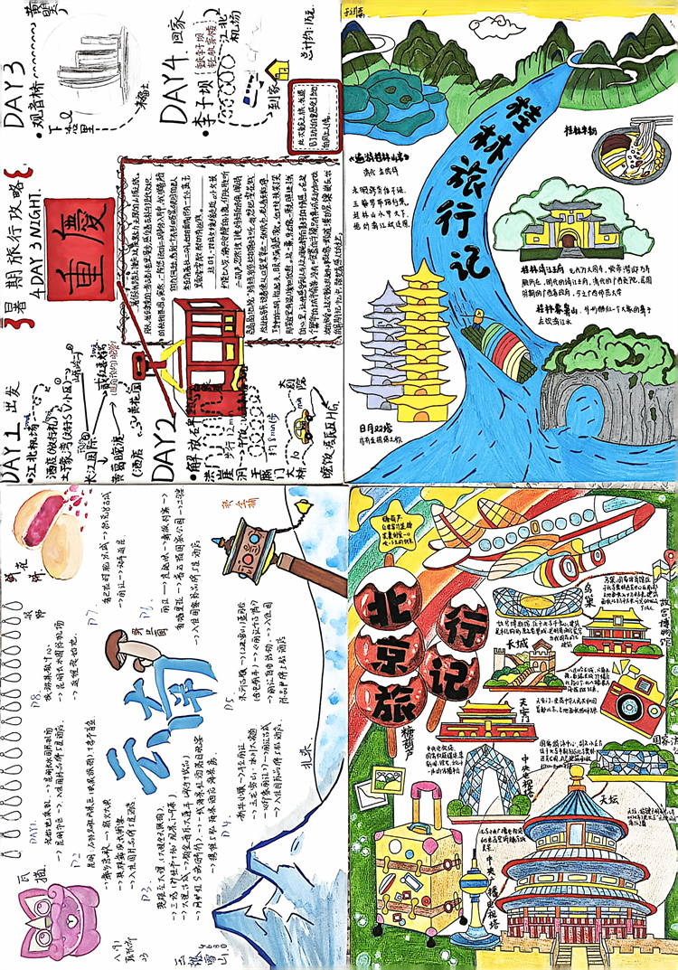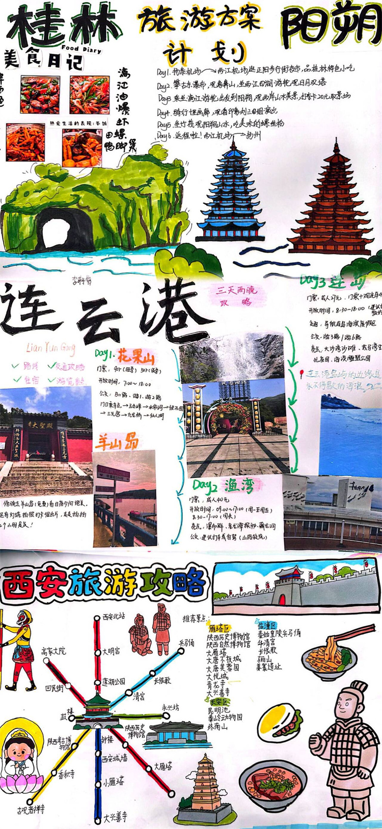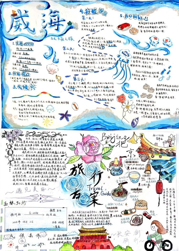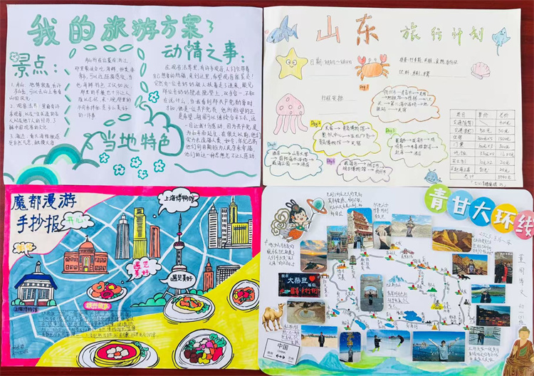 在“暑假旅行方案设计”环节,同学们融合语文、历史、地理等多学科知识,呈现出一份份充满创意的旅行计划。有的同学设计“重走唐诗之路”文化之旅,沿诗人足迹绘制文学地图;有的打造“舌尖上的故乡”美食探索路线,以文字和影像记录地方民俗。大家纷纷表示,这次设计让自己深刻体会到——旅行不仅是欣赏风景,更是一场文化的深度体验。