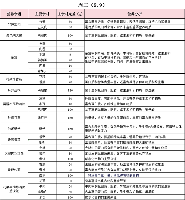 【食堂管理中心】科学搭配膳食 促进健康成长——九龙湖校区一周食谱营养分析