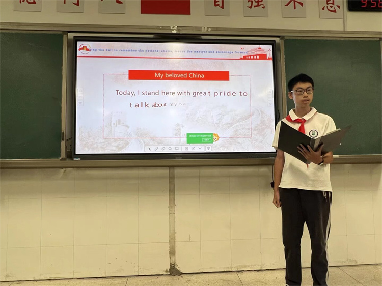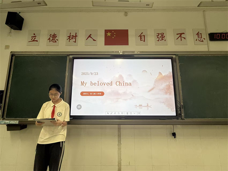 为庆祝中华人民共和国成立76周年、纪念抗日战争胜利80周年,树人学校九龙湖校区初三年级举办了以“My beloved China”为主题的英语演讲比赛。 本次比赛聚焦“爱国情怀”与“历史记忆”双主线,要求选手以英语为载体,结合新中国成立以来的发展成就,讲述自己眼中的中国。