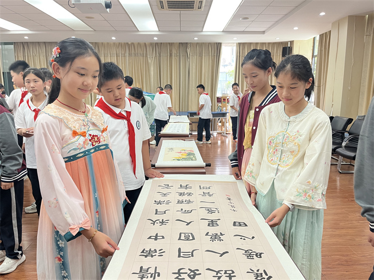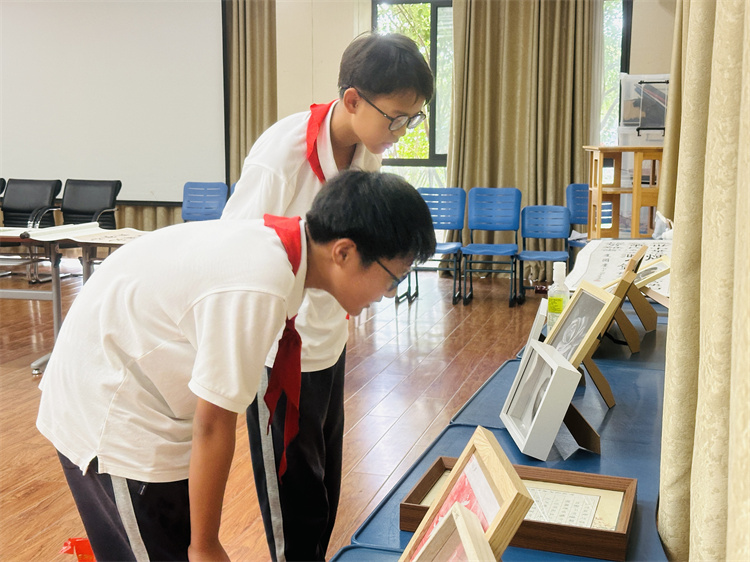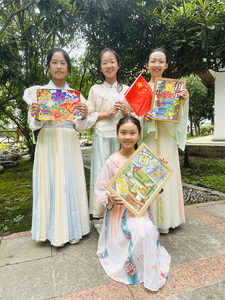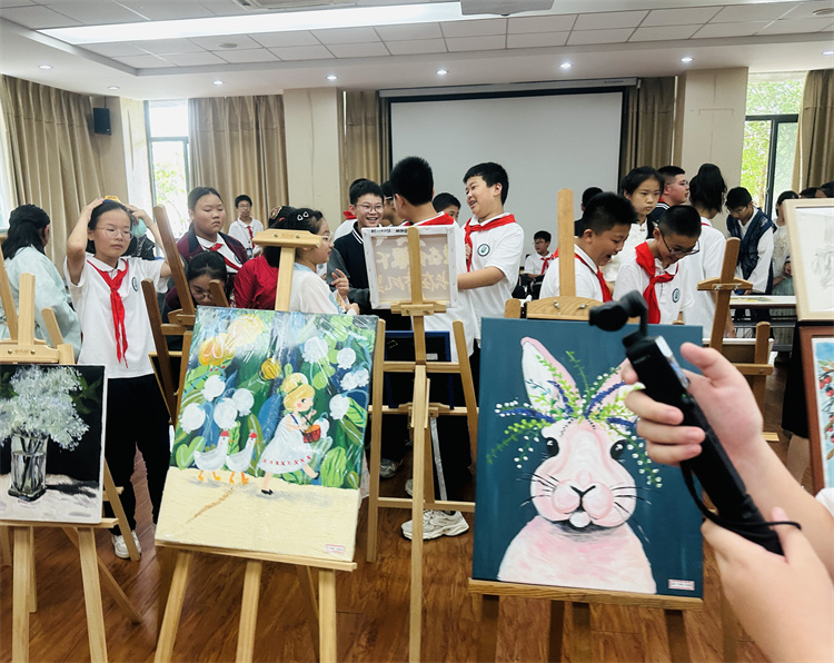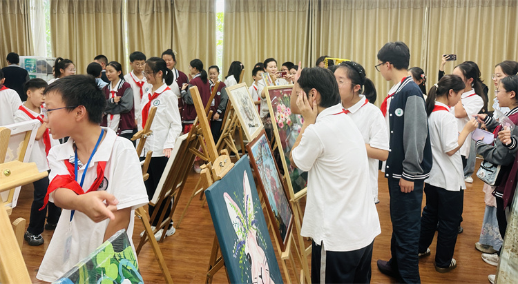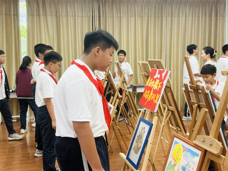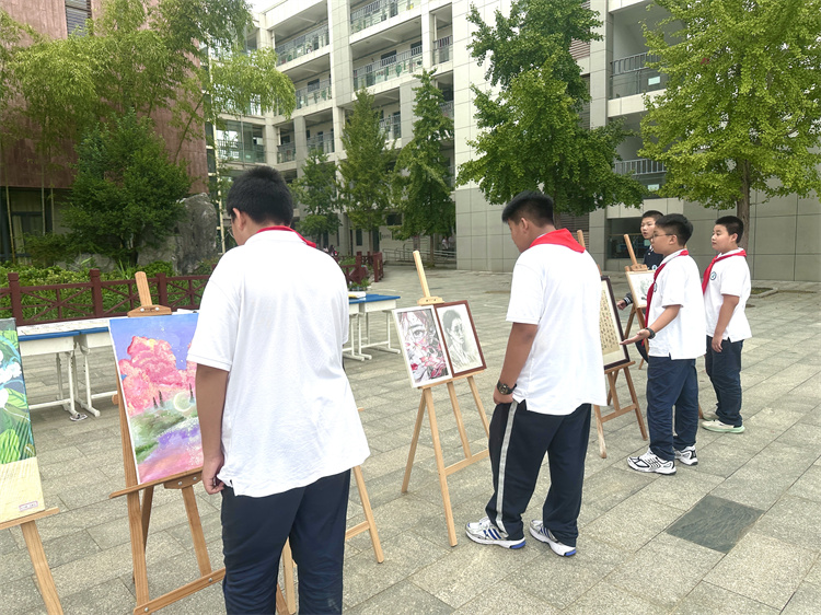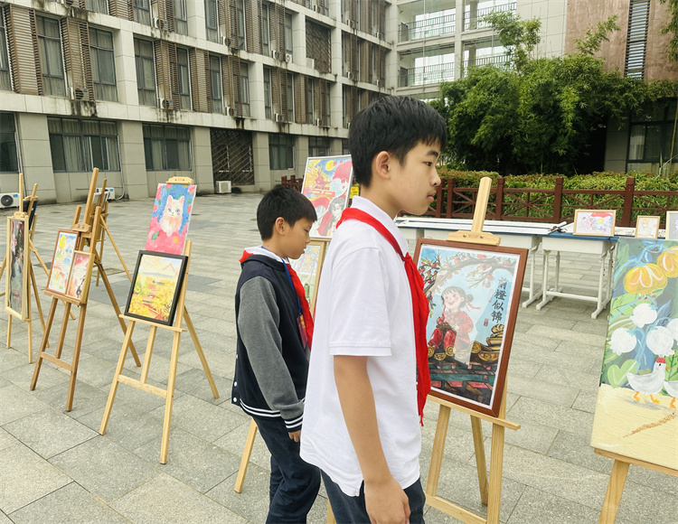 课间与午休时段,师生纷纷驻足观赏。学生主动分享创作灵感,老师结合作品讲解中秋习俗与爱国故事,实现艺术欣赏与文化教育的自然融合,进一步营造了喜庆浓厚的校园节日氛围。