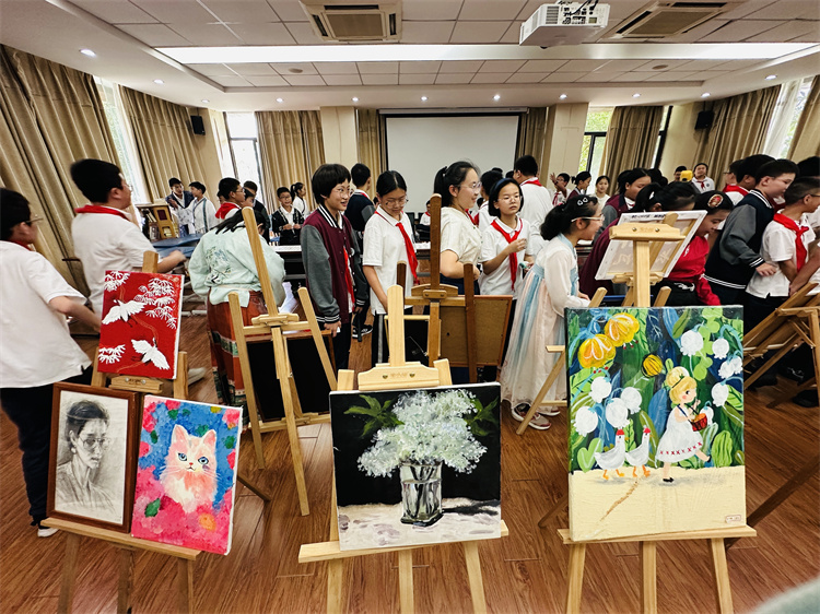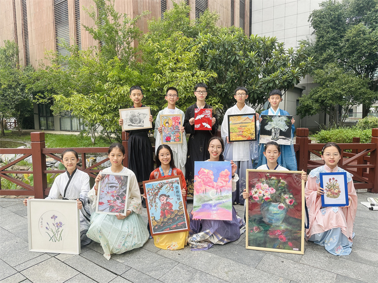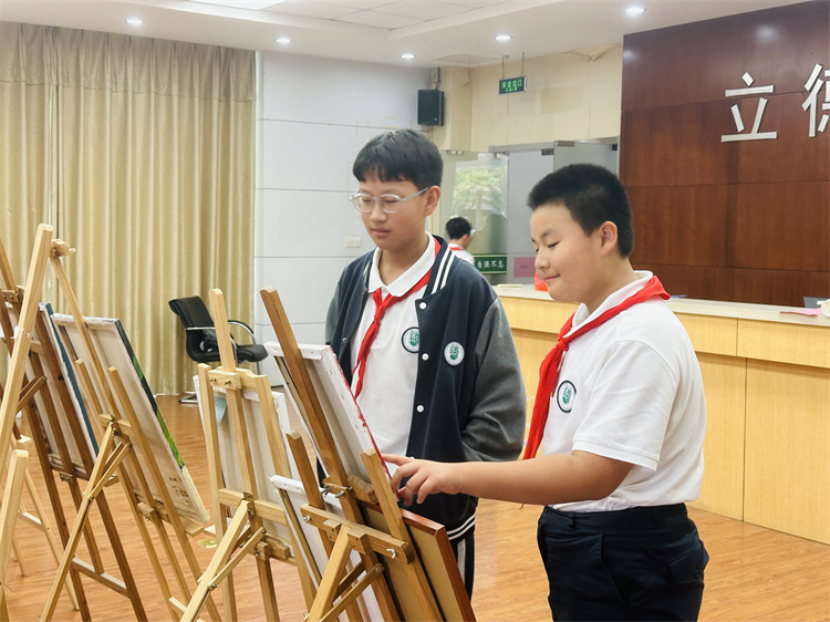 中秋国庆双节来临之际,树人学校九龙湖校区于9月30日在校园书吧启动“双节同庆”主题画展,展览持续至10月15日。