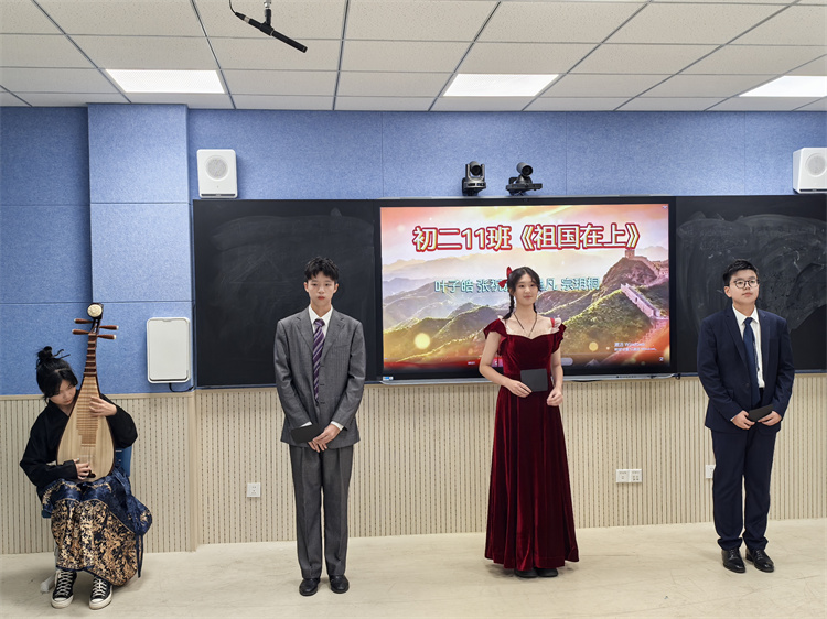 舞台上,同学们声情并茂,将爱国情怀融于字句之间。《月光下的中国》《我的南方与北方》《秋天里的中国》等经典诗篇被重新诠释,少年意气与家国情怀交织,既有金戈铁马的豪迈,亦有月照山河的深情。