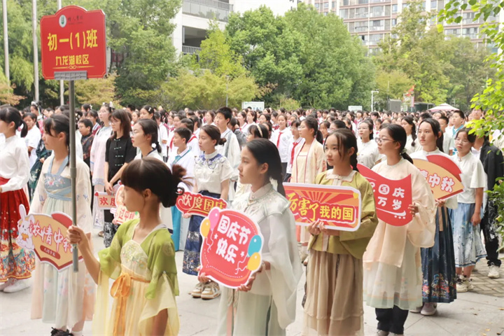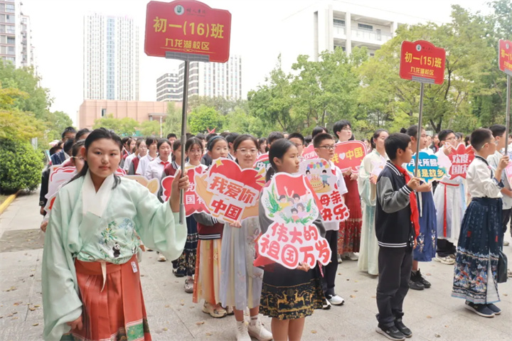 随后,婉转悠扬的扬州清曲《明月照家国》徐徐唱响。作品以皎洁明月为纽带,巧妙融合扬州地域特色与深沉的家国情怀,勾勒出“皎洁月光洒神州,万家团圆庆中秋”的动人画卷。优美的曲调让浓浓的亲情、友情与爱国情在校园中流淌,引发了师生的强烈共鸣。