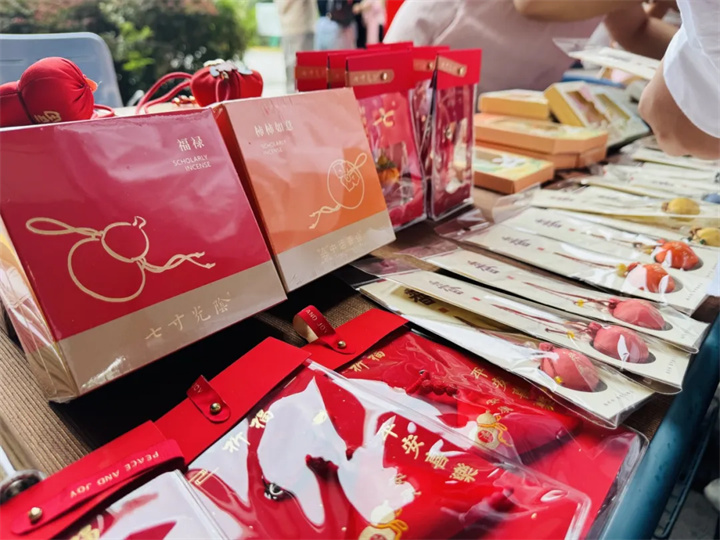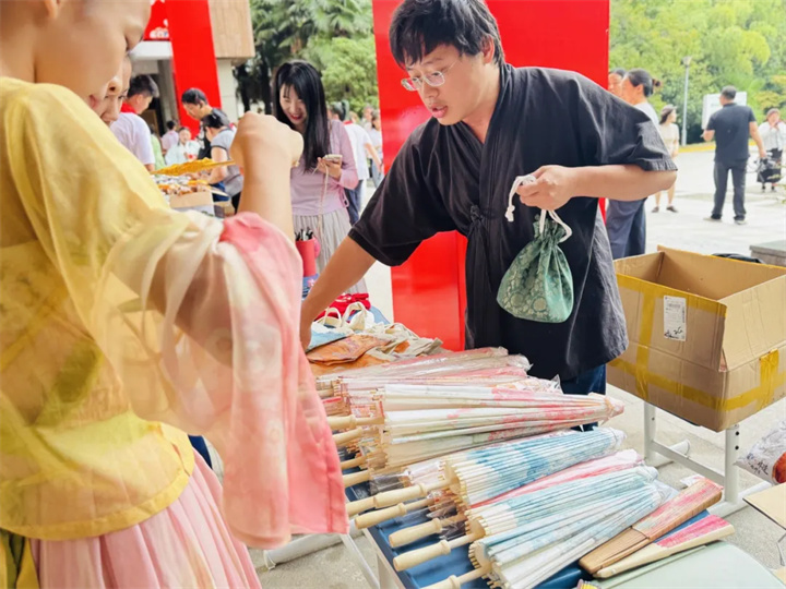 节目表演结束后,充满节日气息的“中秋雅集”非遗集市正式向师生开放。集市现场气氛热烈,各类非遗体验项目吸引了众多师生驻足参与。大家在非遗传承人的指导下,亲手体验传统纹样绘制、中秋纸灯制作等技艺,在一笔一划、一折一叠中,零距离触摸传统文化的脉搏,亲身感受匠心传承的乐趣与奥妙。