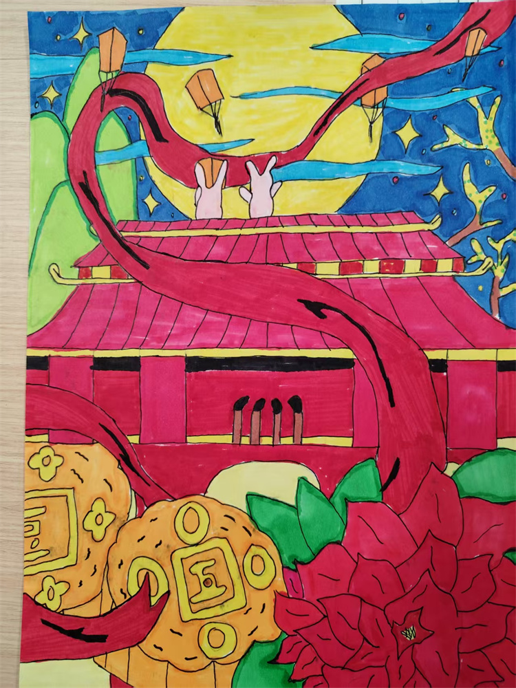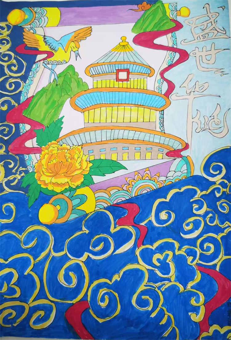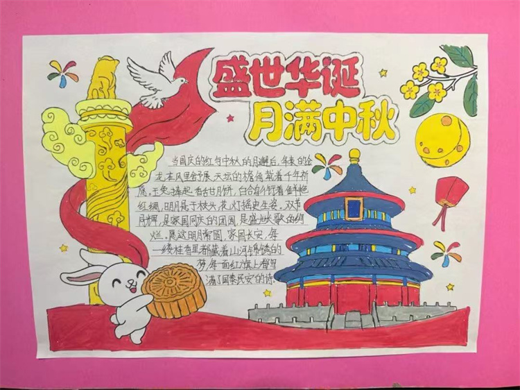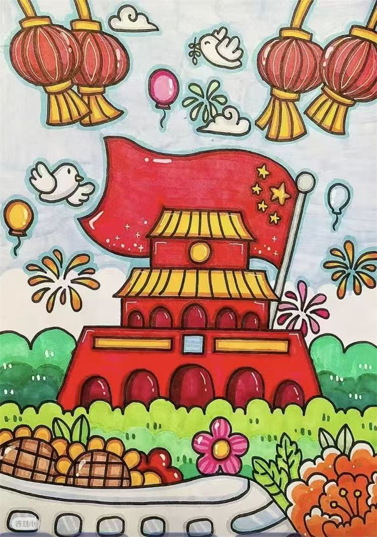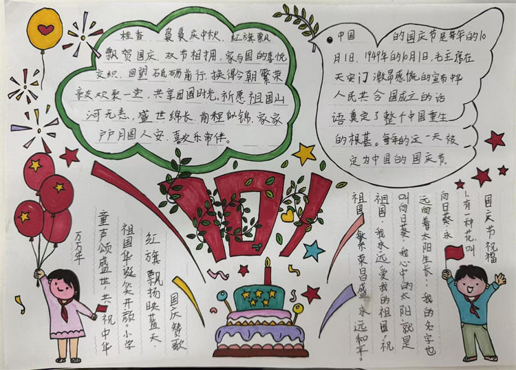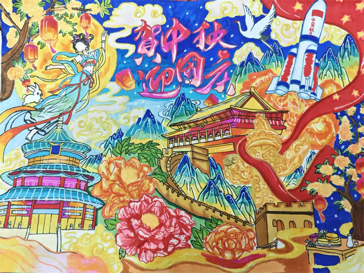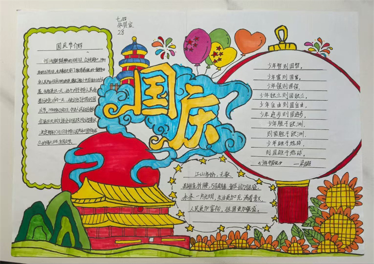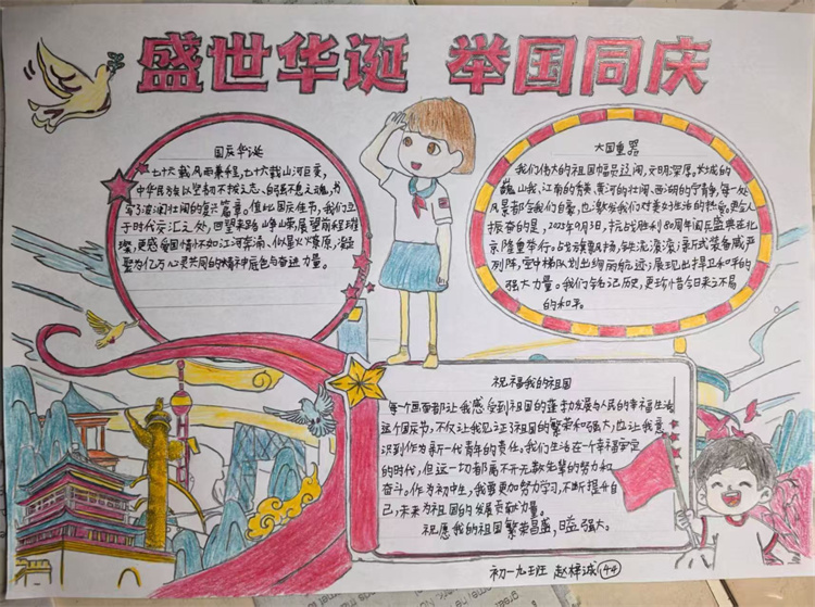 绘画和手抄报就像一扇扇“多彩的窗口”。同学们用画笔勾勒祖国的壮丽景色,也画出了我们心中的理想与担当。每一幅画、每一种颜色,都藏着我们深深的敬意和美好的祝愿。