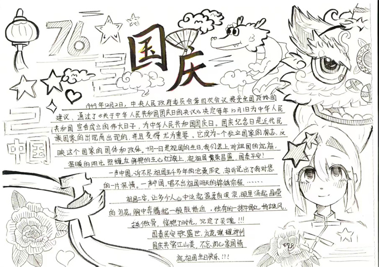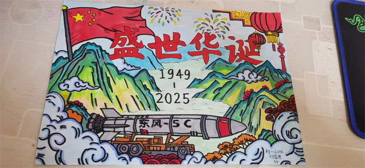 为鼓励同学们把对祖国的热爱转化为实际行动,近日,我校九龙湖校区开展了“礼献祖国作品征集”活动。大家积极响应,通过手抄报、绘画、书签、非遗手工作品等形式,用巧手描绘祖国风采,用真心表达爱国之情,让每一件作品都闪耀着我们对祖国的祝福。