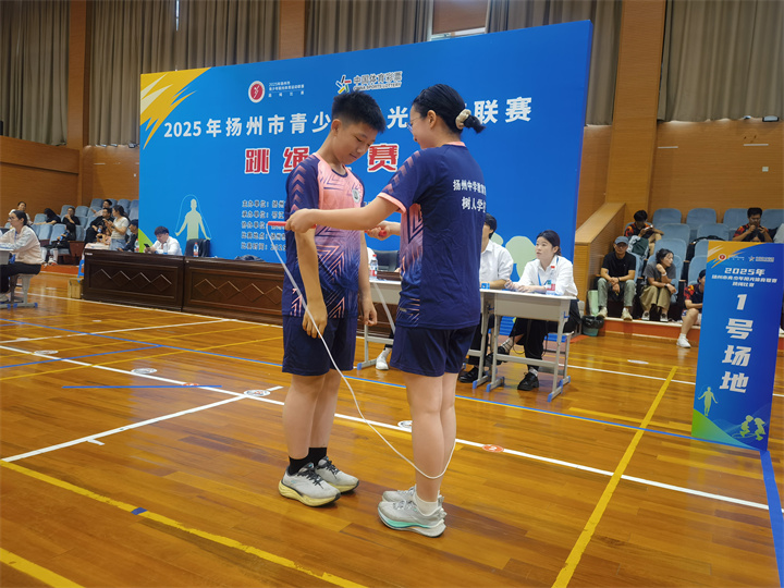 在10月12日举行的2025年扬州市青少年阳光体育联赛跳绳比赛中,树人学校九龙湖校区跳绳队表现卓越,凭借出色的技艺和稳定的发挥,在竞争激烈的赛场上斩获佳绩,充分展现了我校学子蓬勃向上的精神风貌和扎实的体育竞技水平。