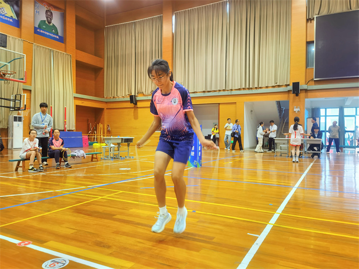 女子1分钟双摇跳:周雅茹同学延续强势表现,勇夺第一;王鸿程同学获得第二名;王琎怡同学获得第六名。